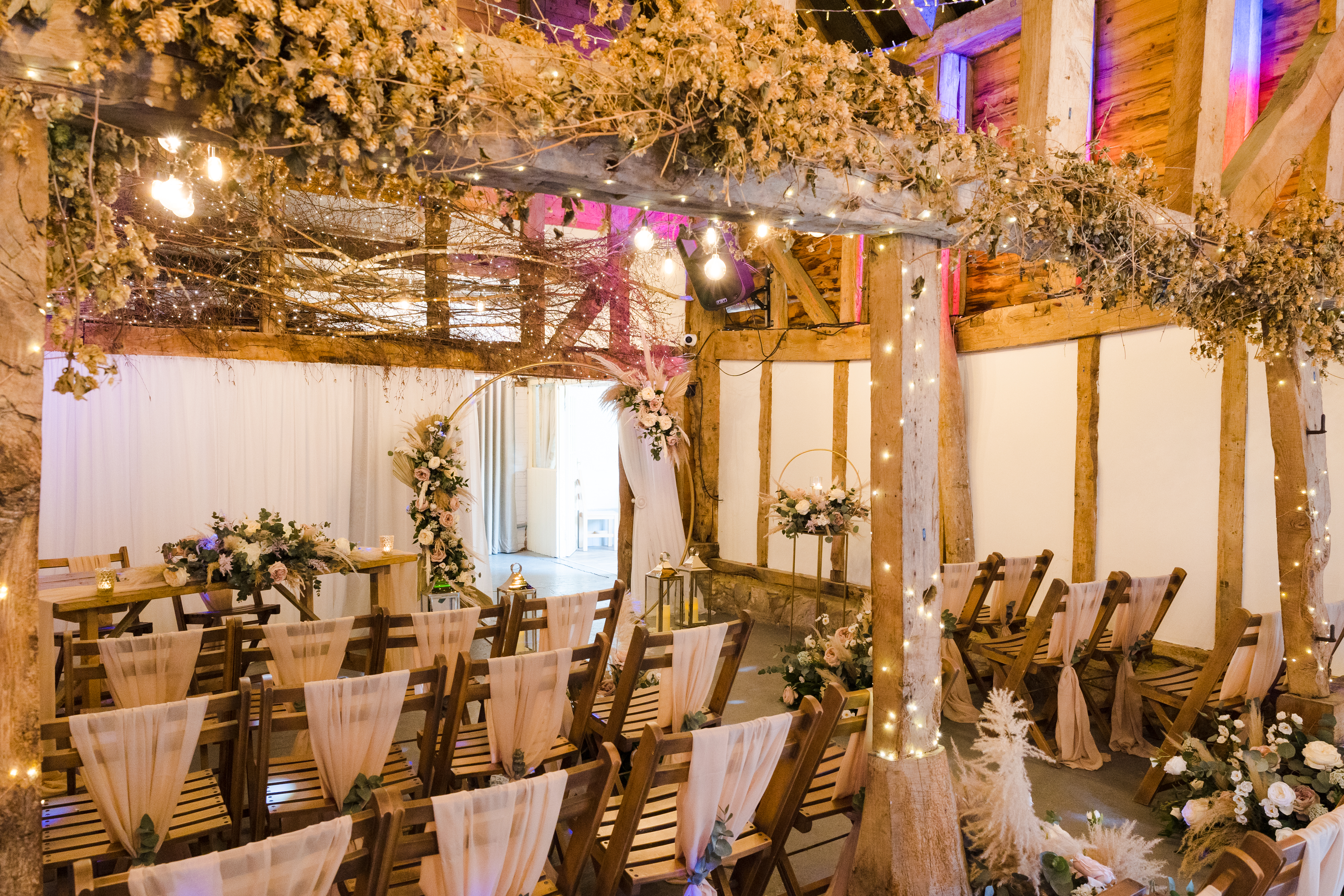 The Apple Barn can host Twilight wedding ceremonies for up to 100 guests with up to another 100 guests being invited in the evening (200 guests in total). You can have indoor wedding ceremonies within the barn itself or choose to have an outside wedding ceremony in our beautiful Courtyard Gazebo.