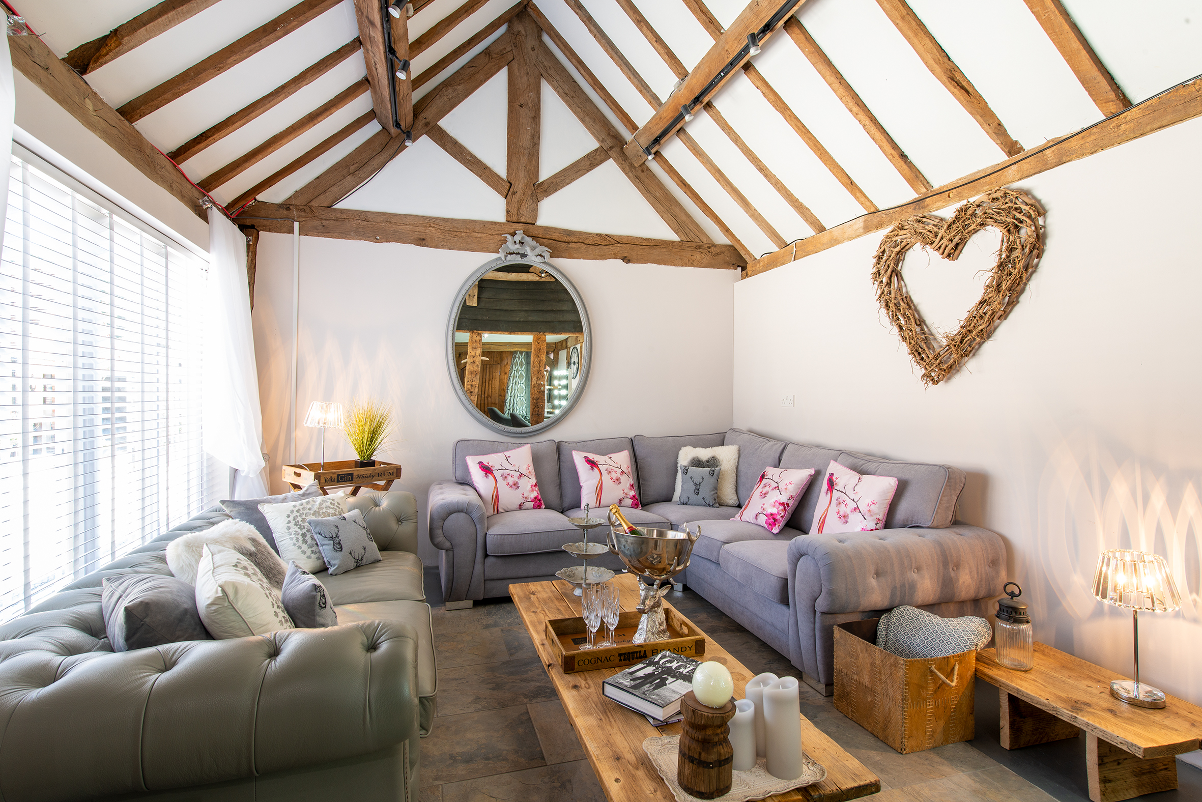 Our recently renovated and converted Apple Barn with its own integral CourtYard is simply gorgeous – strung with thousands of fairy-lights spanning the oak rafters inside the barn and festoon lights spanning the skyline above the Courtyard outside the barn – it will be love at first sight!