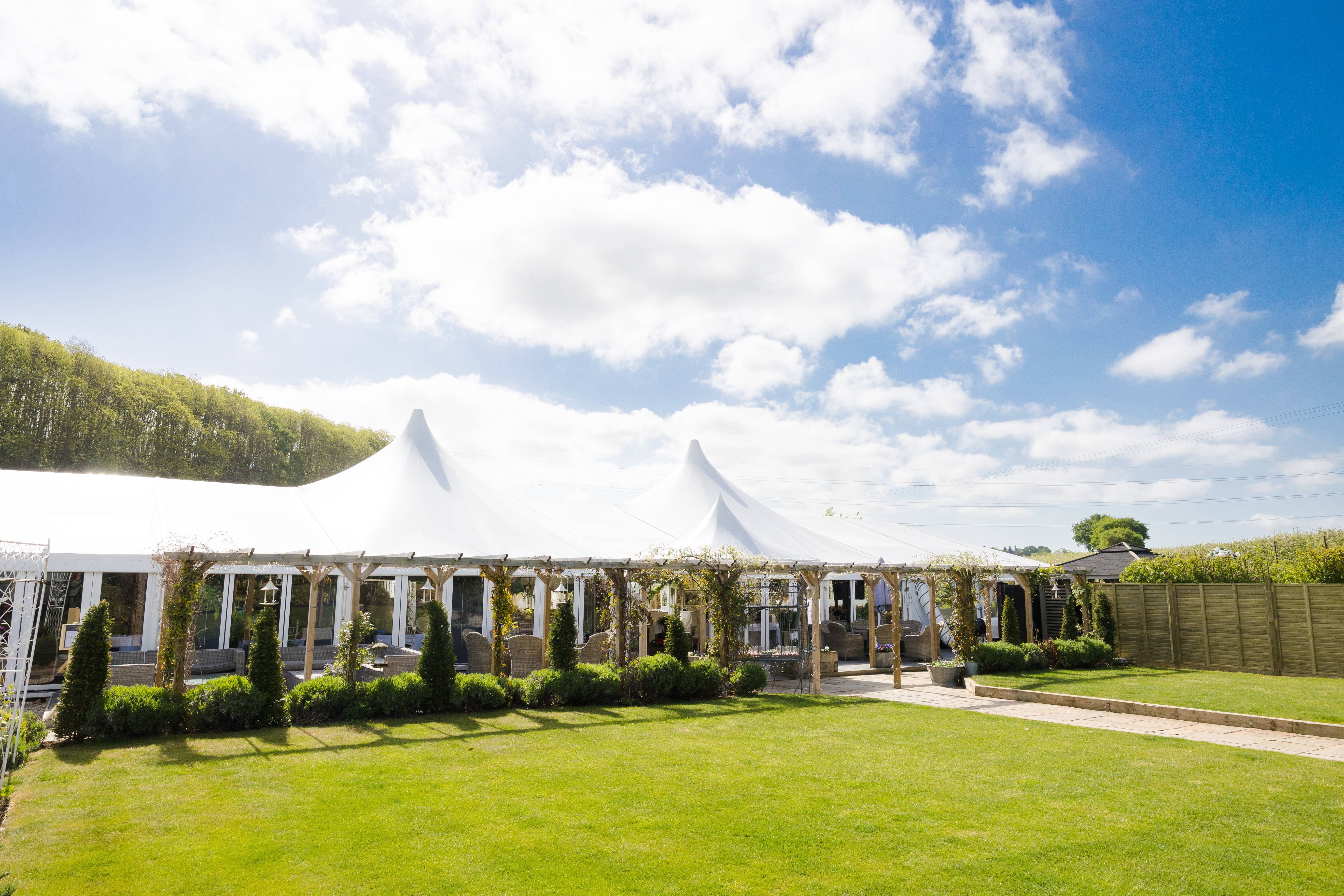 Our elegant, brand new, all season permanent 'glass marquee' is situated within a truly beautiful setting. As you approach the venue the first thing you will feast your eyes on is the beautiful entranceway and surrounding acres of apple and pear orchards, rolling hills and woodland. Peace and quiet from EVERY aspect – away from noisy traffic on roads, housing and industrial estates, schools – in fact anything that could intrude on your day.